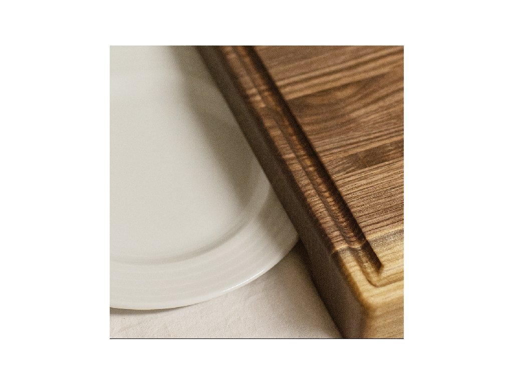 #3 Kuchyňská destička Ručně vyrobená kuchyňská deska z masivního evropského ořechu. Rozměr cca 30×50 cm. Spodní kapsa umožňuje zasunutí talíře a pohodlné shrnutí nakrájenýc