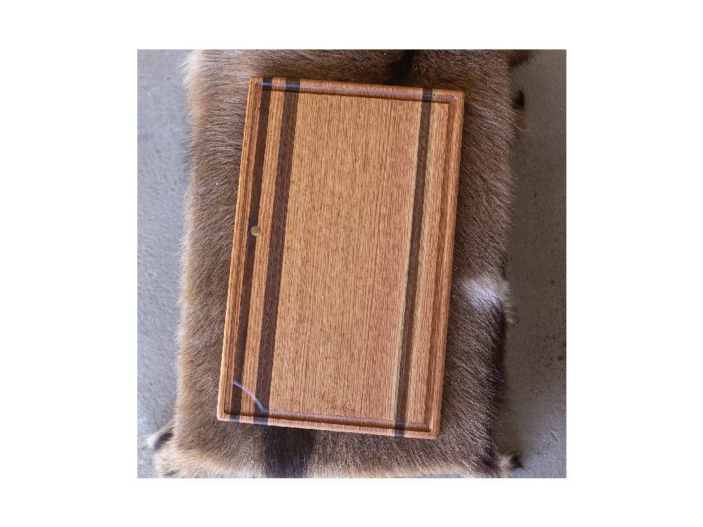 #5 Kuchyňská destička Ručně vyrobená kuchyňská deska z masivního evropského ořechu. Rozměr cca 30×50 cm. Spodní kapsa umožňuje zasunutí talíře a pohodlné shrnutí nakrájenýc