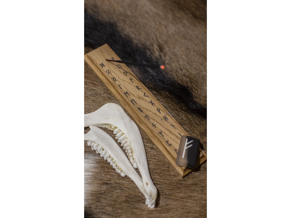 dubový stojánek na vonné tyčinky. Se znaky 24 run starého futharku - Viginské abecedy